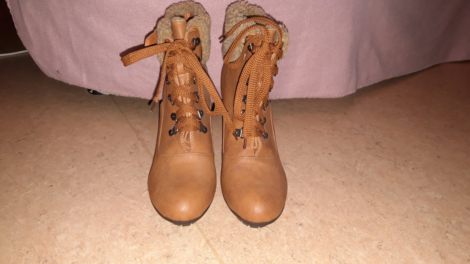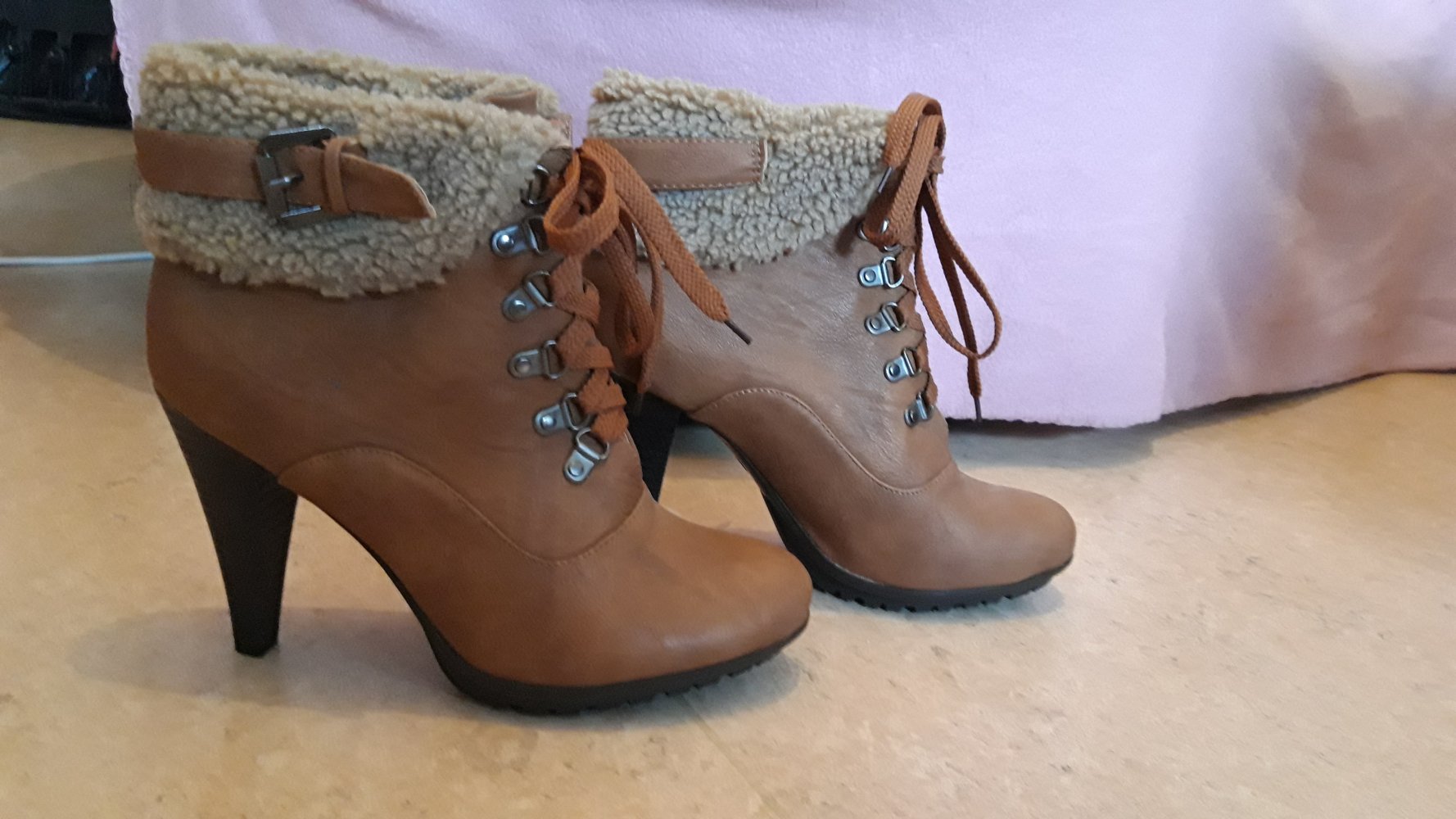 Leicht gefütterte Stiefeletten mit Teddyfellbesatz und Zierschnalle. Passen super zu Jeans, Rock, Kleid und Leggins.