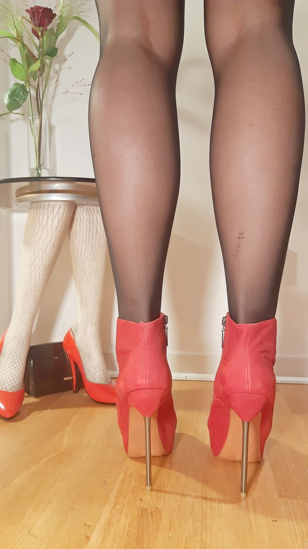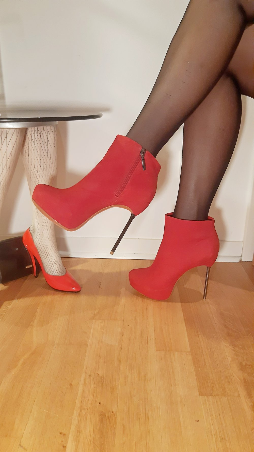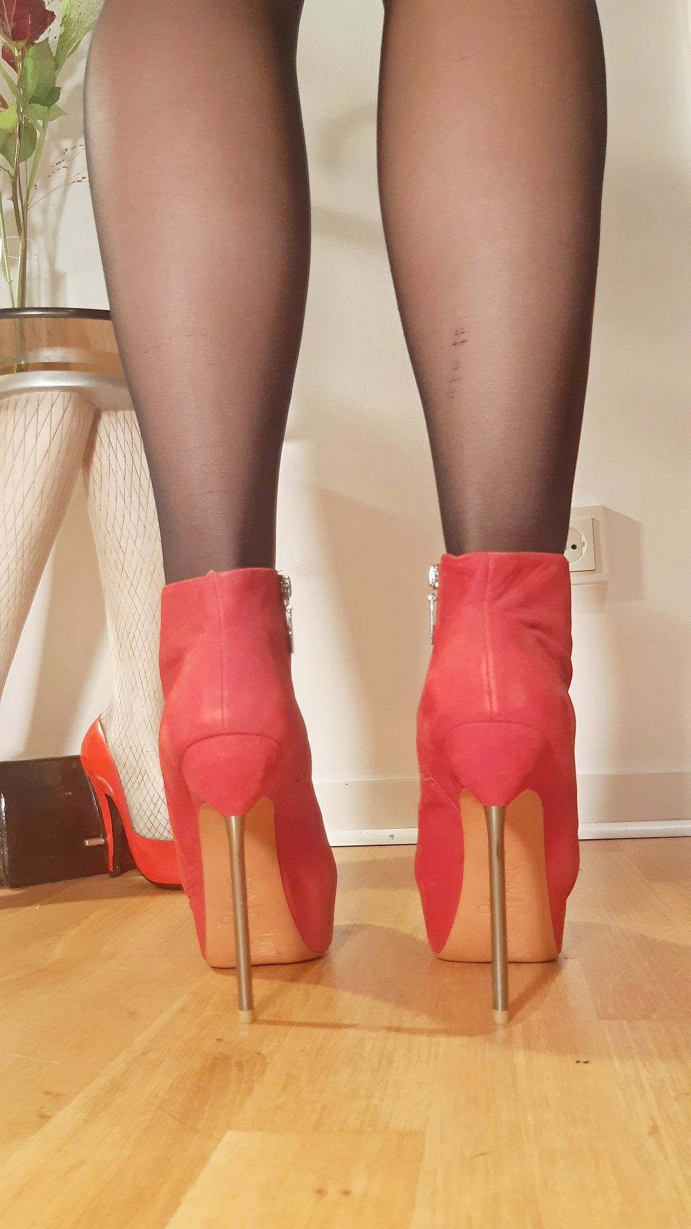rote Stiefeletten Plateau Wildleder Metallabsatz Stiletto Leder 40