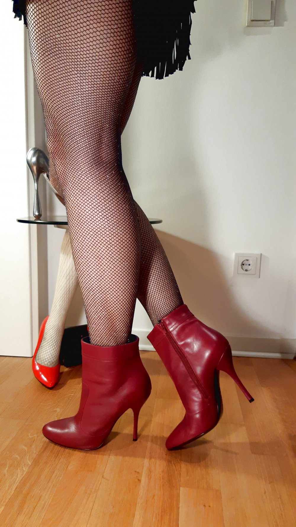 spitze Stiefeletten rot Girly sexy Weihnachten Kunstfell 40