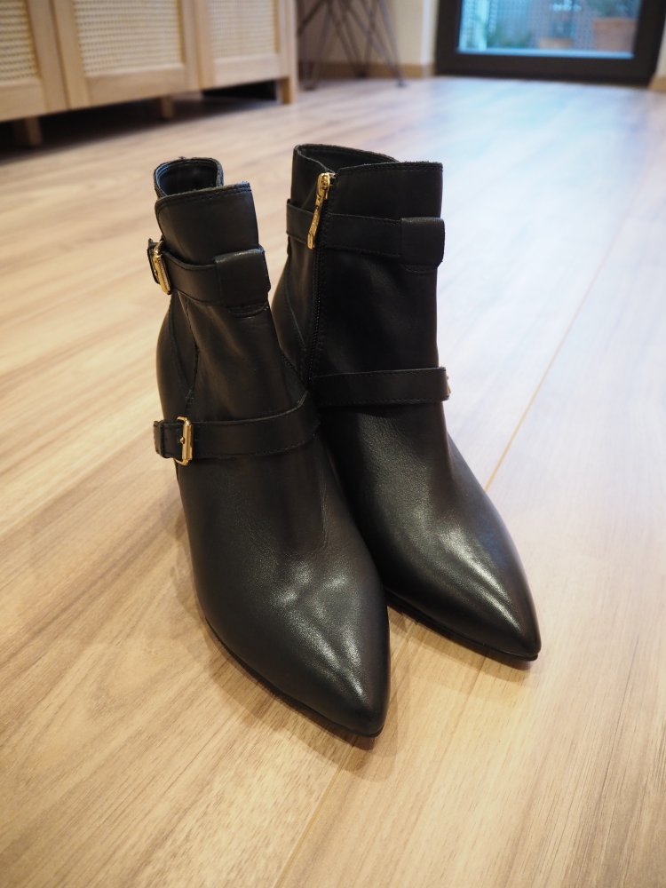 ✨ Diese schwarzen Stiefeletten von Sir Oliver (by s.Oliver) überzeugen mit ihrem edlen Design aus echtem Leder und eleganter Silhouette. Durch die spitze Form in Kombi mit dem schmalen hohen Absatz und den goldenen Zierschnallen wirken sie besonders hochwertig. Das Innenfutter sorgt für angenehmen Tragekomfort. Ob zum Business-Look mit einem Bleistiftrock oder zur Jeans für einen schicken Casual-Style – diese Stiefeletten sind ein echter Allrounder.