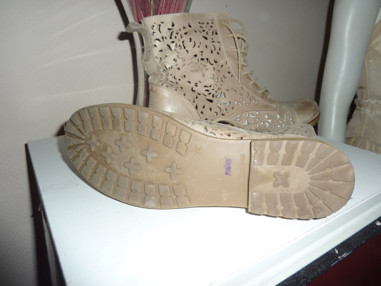 Original Deerberg 42 beige Steifel flach Boots Schuhe Stiefelettten echtes Leder Lederstiefel Sommerstiefel