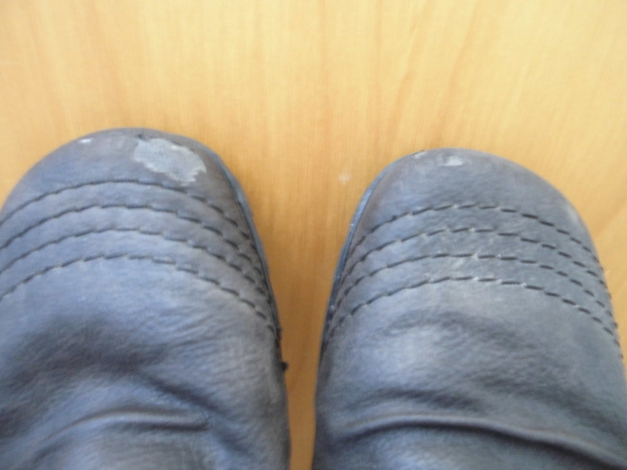 Vorne hat sich bei beiden Schuhen das Obermaterial abgelöst (siehe Foto). Am linken mehr, als am rechten. Ist kosmetisch zwar nicht mehr so schön, hat aber sonst keine Auswirkung auf die Dichtigkeit und Wärmehaltung der Schuhe.