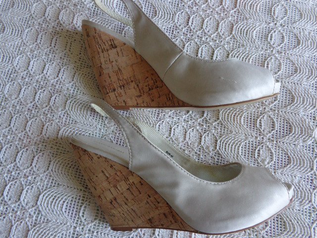 nicht oft getragene Sandaletten Wedges beige Gr. 40, mit Kork - Keilabsatz, guter Zustand, leichte Tragespuren, am Riemen Gummizugeinsatz, Absatzhöhe ca. 11 cm, 18,00 Euro, Versand 5,00 Euro möglich, zeitnahe Antwort, Privatverkauf, Rücknahme ausgeschlossen (9389 - 9395, nur für mich)