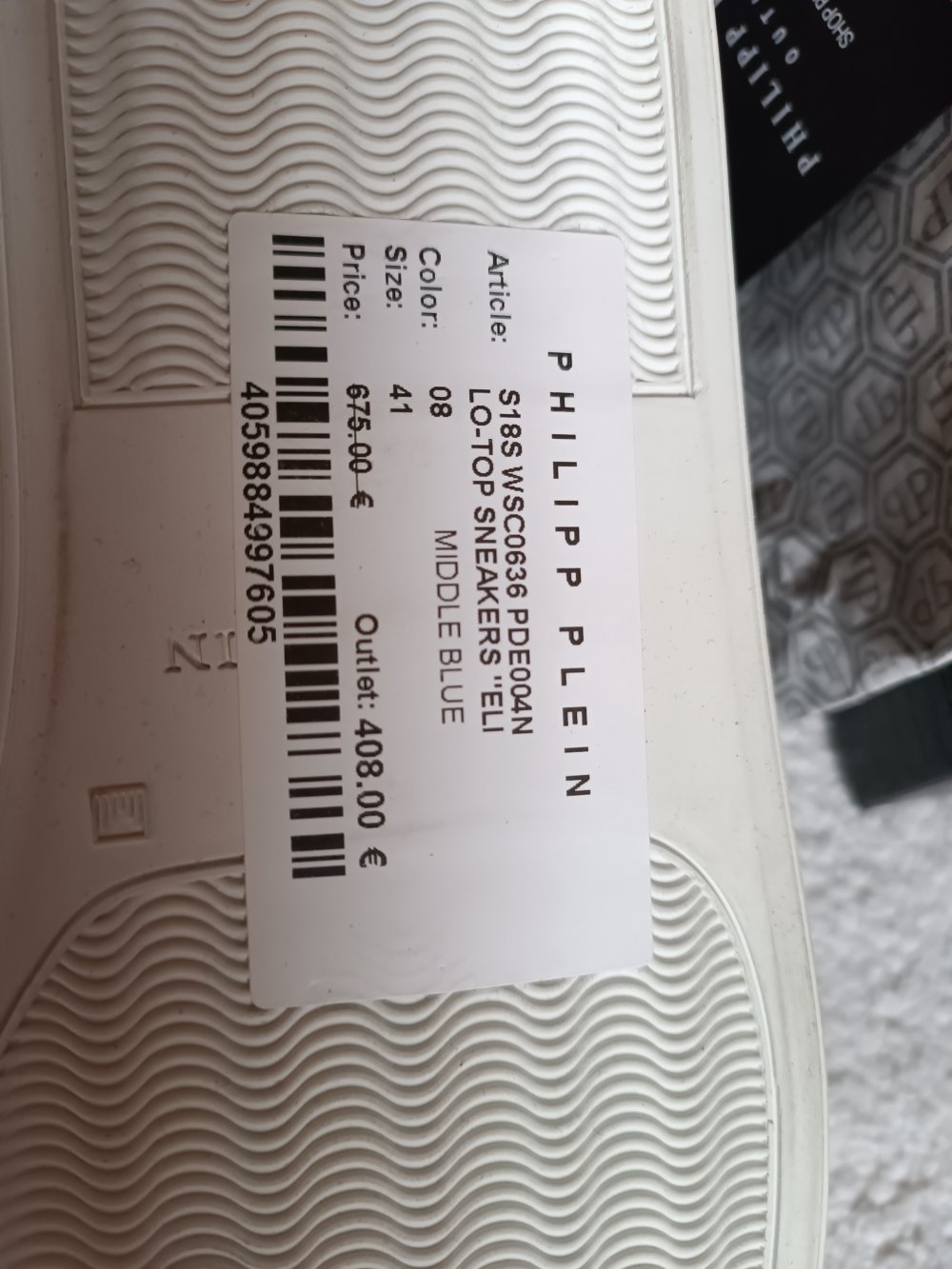 Hier biete ich neue ungetragene auffällige Sneaker zum Schnüren von „Philipp Plein“ an. Die Schuhe werden im Originalkarton – wie abgebildet – verschickt. An einer Ecke der Verpackung ist ein Riss.