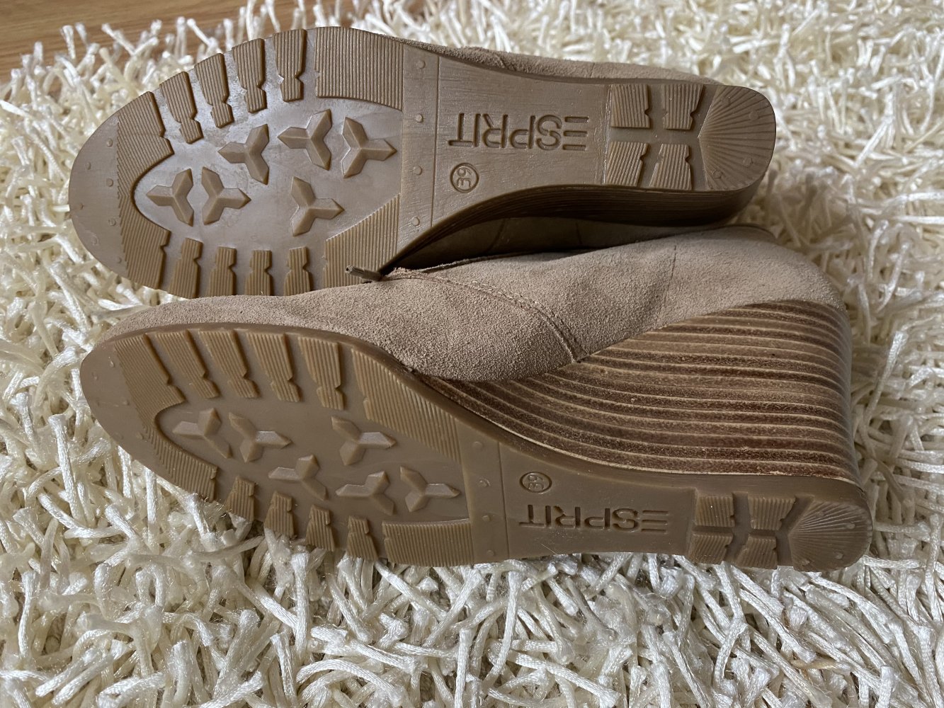 Gebe neue Schuhe von Esprit ab. Größe 39. Der eine hat leider einen kleinen roten Fleck, fällt aber kaum auf.
