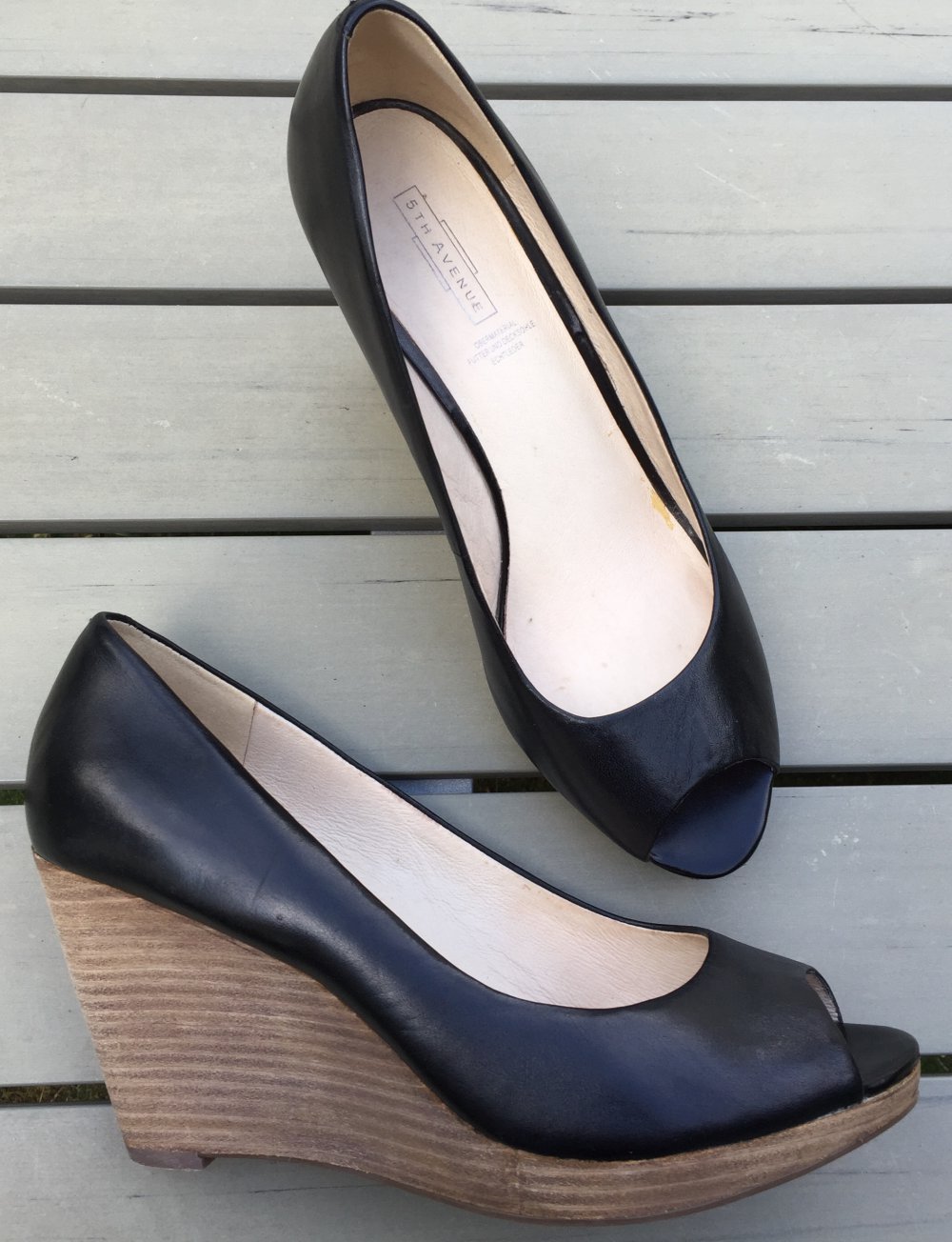 Schwarze Peeptoe Wedges von Fifth Avenue (die etwas teurere Linie von Deichmann) in Größe 41.