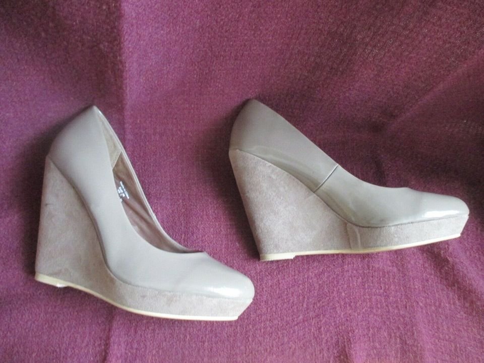 NEU * Lack * Velours * Leder * Keilabsatz * Wedges * Plateau * Pumps * Schuhe "H&M" Gr. 38/ 5 * taupe * beige *