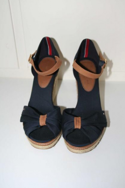 Original TommyHilfiger Sandalen/Wedges in dunkelblau mit Keilabsatz. Dieses Jahr gekauft aber leider ziehe ich sie nicht an. Einmal beim Essen gehen getragen. Wie Neu.