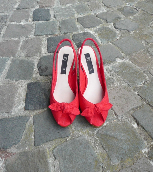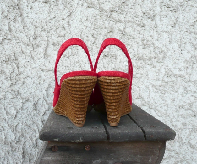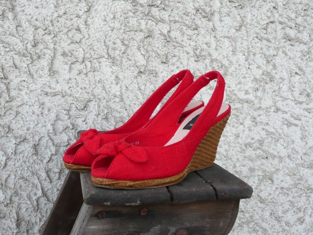 Mango Peeptoes Slingbacks Wedges Keilabsatz Pumps rot Gr.36