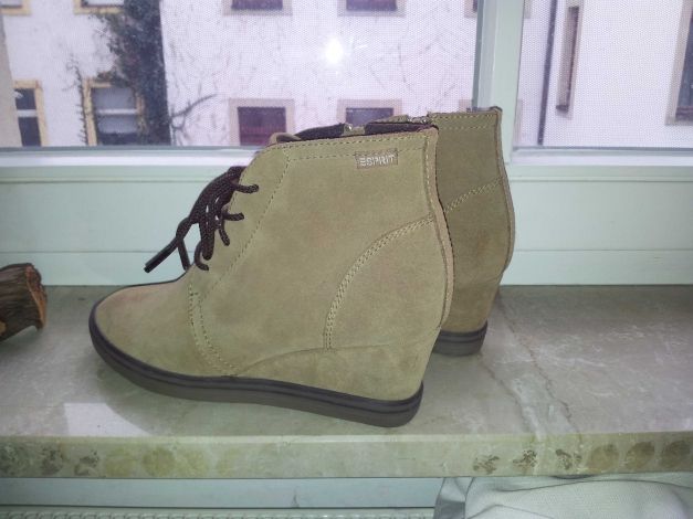 Das Hellbraun der Schuhe kommt bei dem einen Bild (Kopie) am besten zur Geltung - sorry für die etwas helleren Fotos, Handykamera ist nicht der Hit. Aber wie ihr sehen könnt, in einem sehr guten Zustand - neuwertig eben. In der Sohle des rechten Schuhs hat das Etikett eine kleine rötliche Verfärbung, keine Ahnung weshalb.