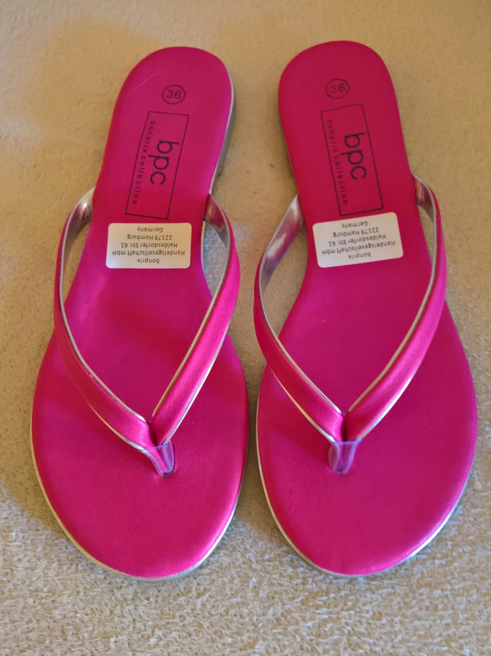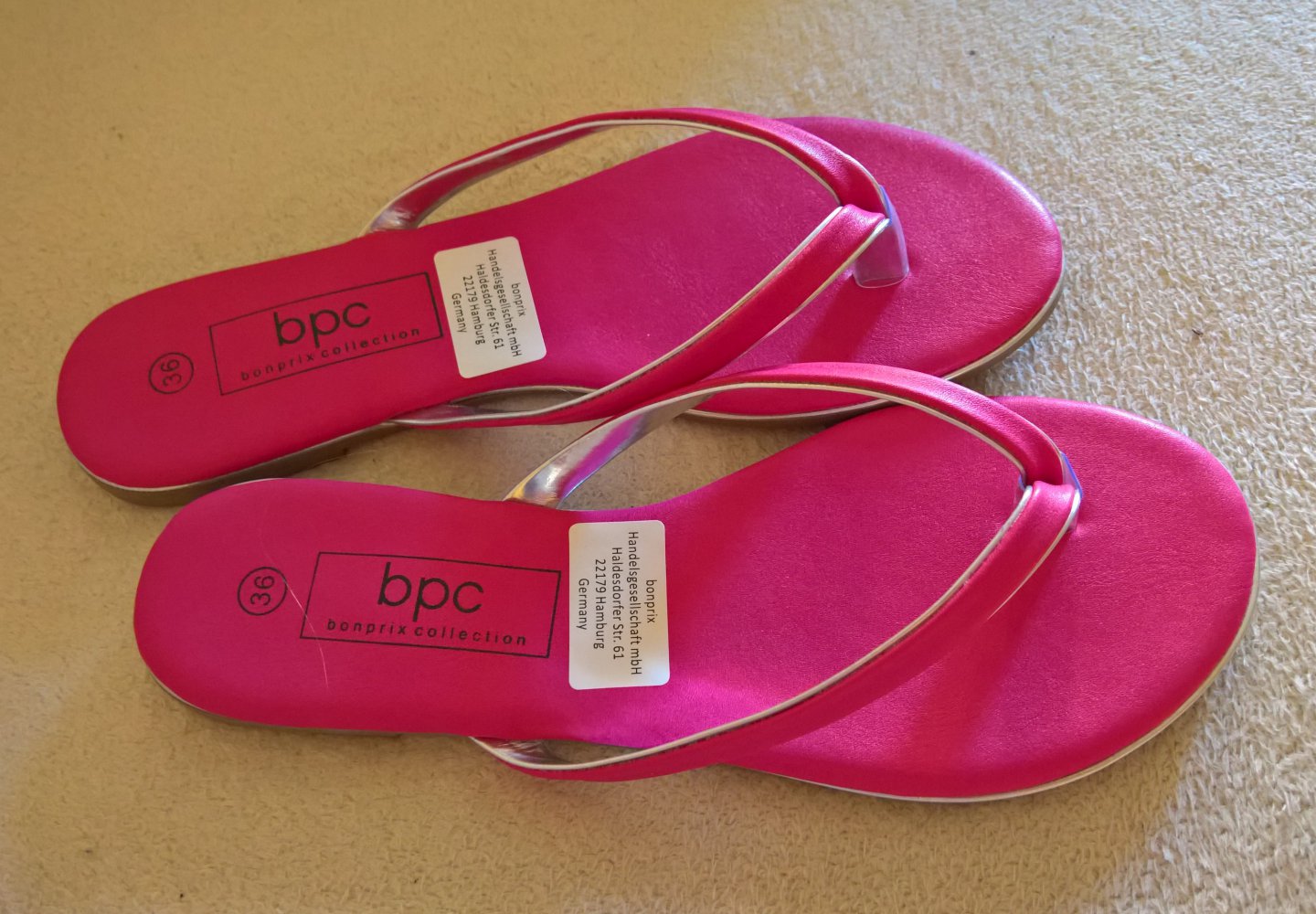 neue Zehentrenner-Sandalen Gr. 36 pink silber