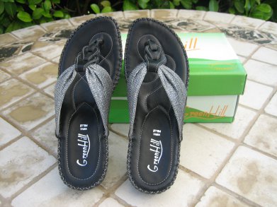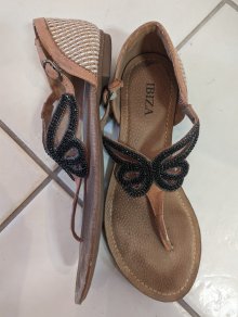 Ich trenne mich von diesen legeren Pantoletten mit schwarzen Zehensteg in Kunstlederoptik, da meine Füße dafür zu schmal sind und ich keinen guten Halt darin habe. Für normal große/breite Füße sollten sie aber optimal passen :)