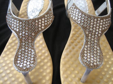 Superedle Sandaletten Gr. 39, Zehensteg-silber/gold, Straßsteine