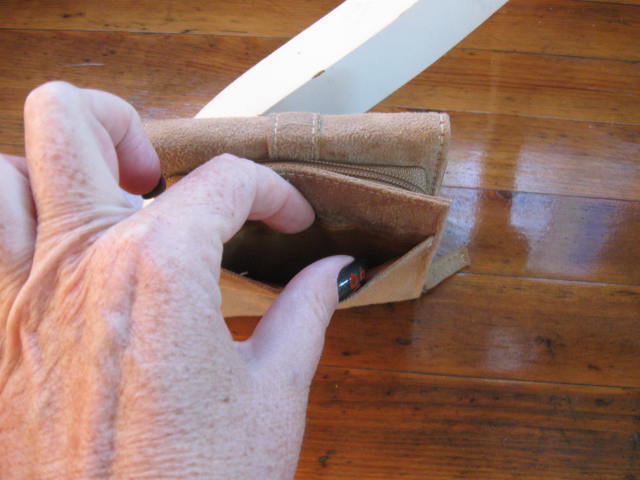 für Kleingeld und so wie für die Geldscheine. Das Material ist so Velours mäßig.