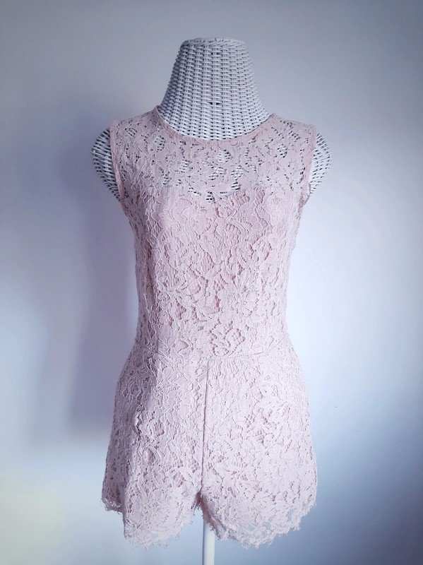 Rosafarbener Amisu Playsuit | Spitze | Romper | Cutout