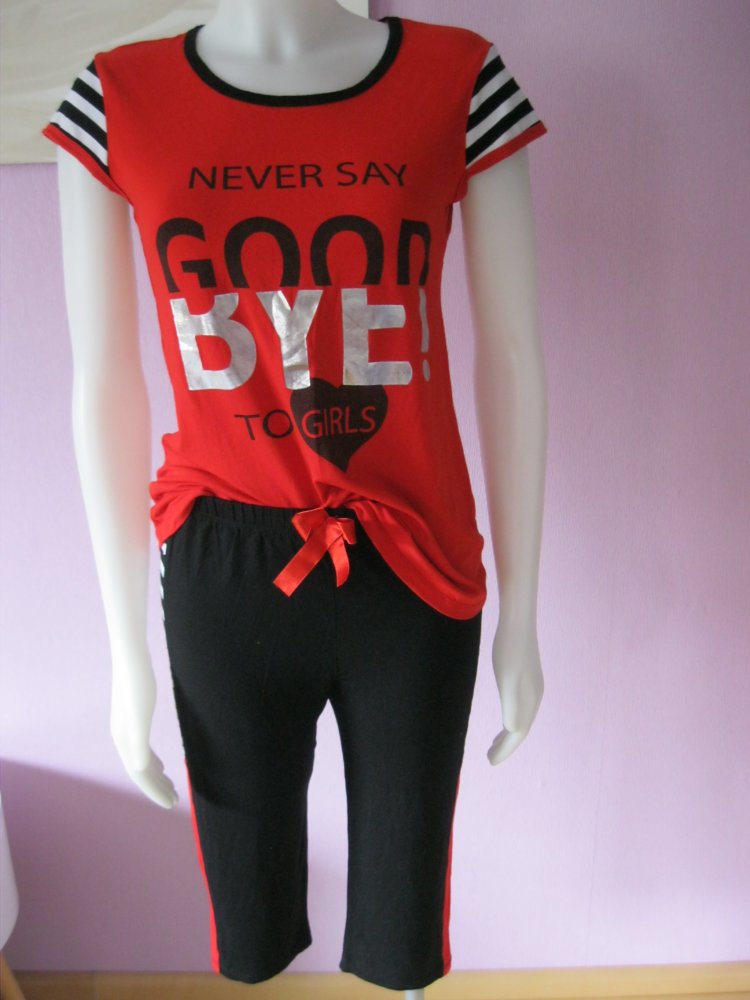 2-Teiler # Pepa # Kurze Leggins # T-Shirt # 100% Baumwolle # Schwarz/Rot/Weiß # XXL