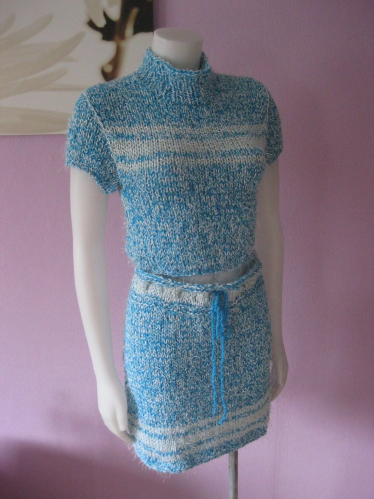 Ausgefallener 2-Teiler aus Rock und Kurzarmpulli in Grobstrick.