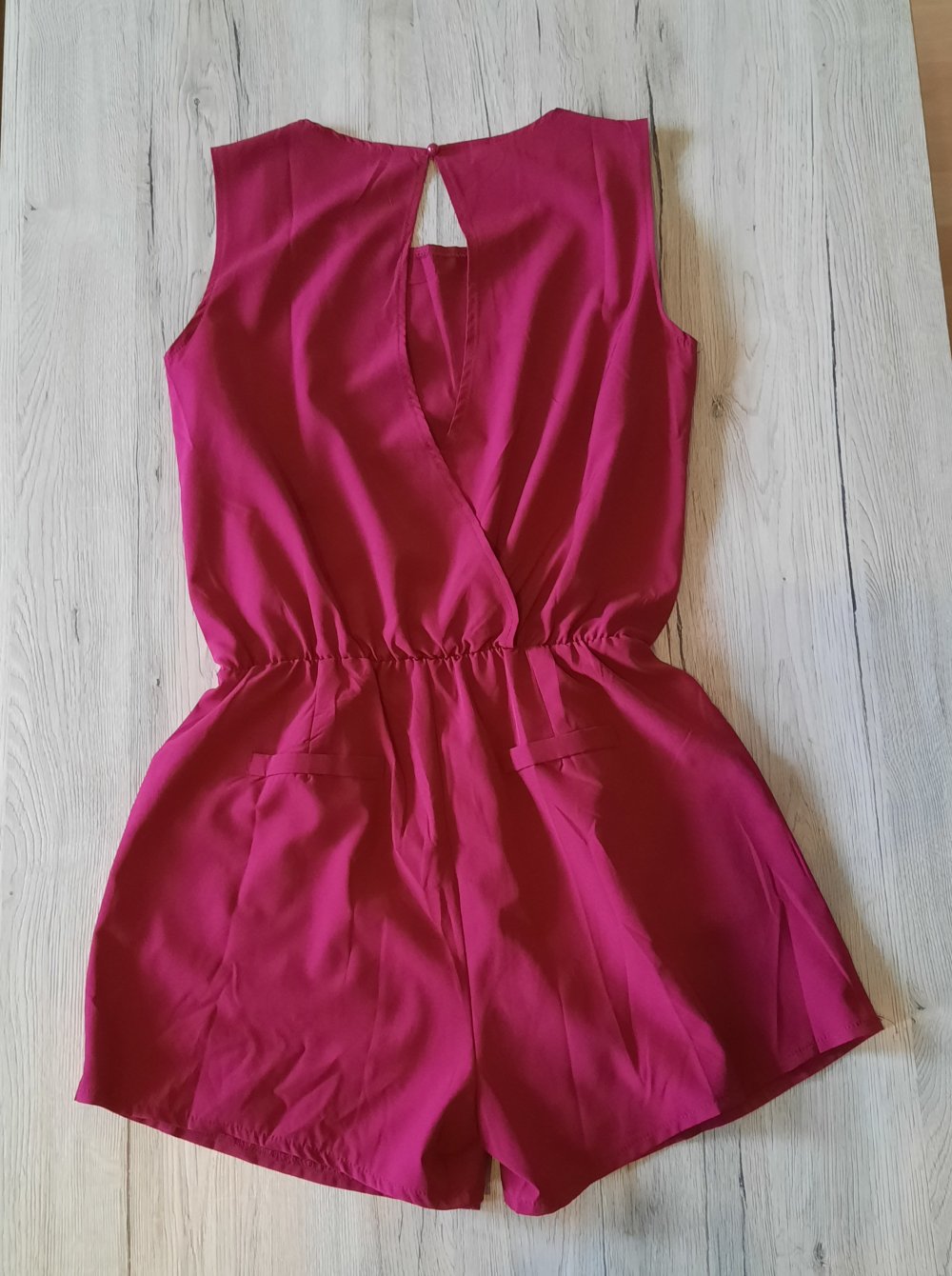 Beinöffnung 31,5cm, Hoseninnenlänge 8cm, Hosenaußenlänge (gemessen ab Gummizug) 33,5cm. Länge insgesamt 82cm. Breite unten 56,5cm, Breite Gummizug 33cm. Brustweite 43cm, Träger zu Achsel 19,5cm, Trägerbreite 7cm.