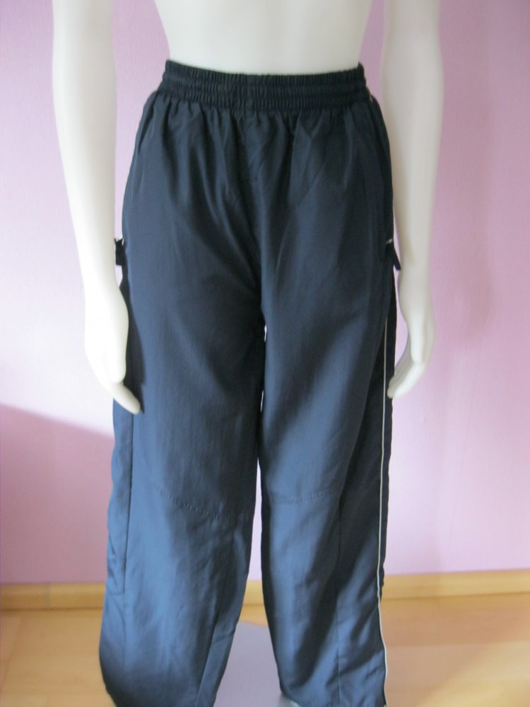 Trainingshose/Outdoor-Hose unterfüttert mit grauen Kontraststreifen an den Beinen.