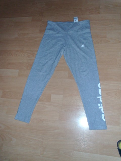 Biete hier eine Leggings von Adidas in Größe 40/42 an. Sie ist mit Gr. L angegeben und fällt etwas kleiner aus, sie wurde in oben genannter Größe kurz anprobiert. Es handelt sich um das Model adidas Womens Loungewear Essentials High-Waisted Logo Leggings in hellgrau mit weißem Logoprint. Die Leggings hat einen schönen breiteren bequemen Bund und sie besteht aus 93% Baumwolle und 7% Elasthan. Sie ist neu, ungetragen und noch mit Etikett versehen.