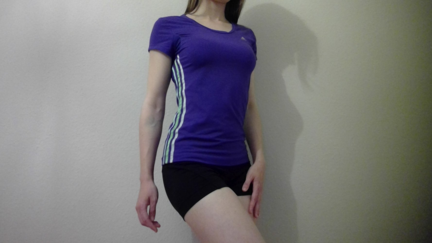 Sportshirt von Adidas in lila, mit Streifen an der Seite.