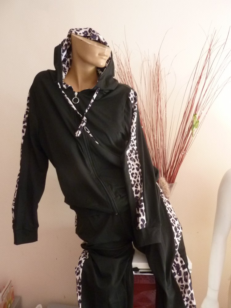 Damen Sportanzug Kapuze Trainingsanzug Jogginganzug SportJacke SportHose XL 42 44 schwarz Leo TRainingshose Jogginghose