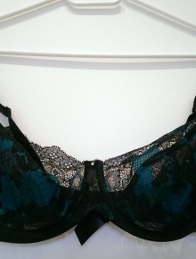 Dieser schöne BH ist unwattiert, jedoch mit Bügel. Er hat leicht blaue Akzente und fühlt sich sehr angenehm auf der Haut an.