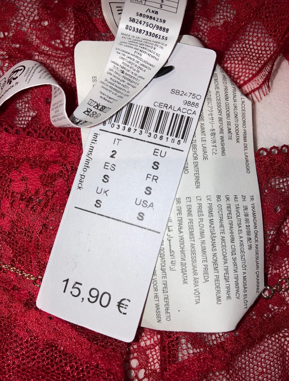 Strahlendes Rot mit schöner Spitze Udn goldene Details, Kettchen ist abnehmbar:)