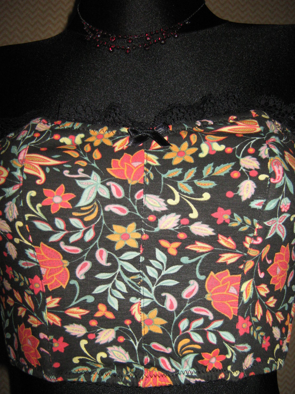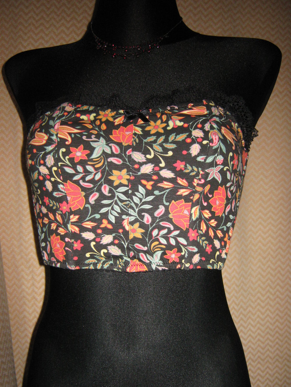 NEU Bumen Blüten Flower Power Lace Spitzen Bustier Korstett Corsage "ARIVAL" Gr. 34/ XS * 70A+B schwarz bunt