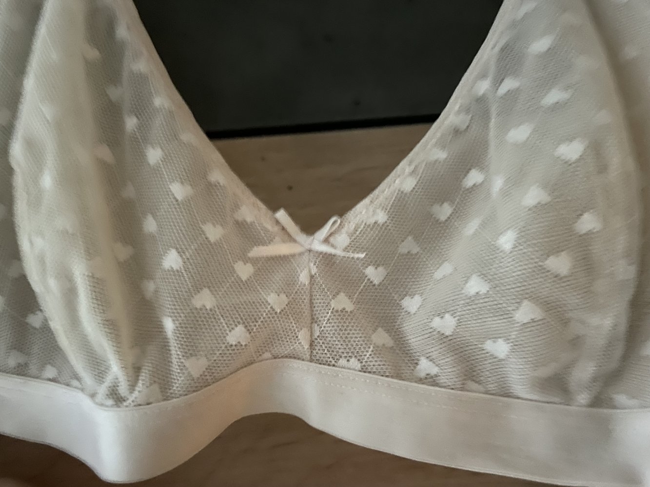 durchsichtiger rosa rosé BH ohne Bügel - sexy mit Herzen - 75 B 80 A