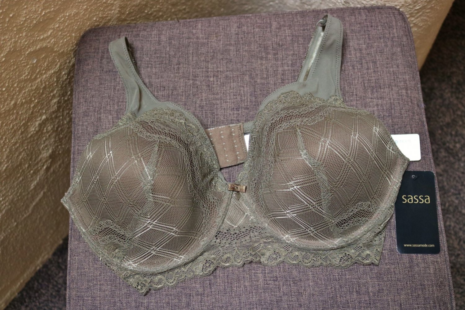 Schalen-BH mit Spitze, Gr. 85 D, oliv, Marke: Sassa, neu mit Etikett, zauberhaftes Design - allover mit Spitze überzogen, weiche und hochwertige Markenqualität, hoher Steg, zu Schließen mit 3 Haken, Öko-Tex Standard 100 (geprüfte Qualität auf Schadstoffe), Material: 55% Polyamid, 35% Viskose, 10% Elasthan, Spitze: 92% Polyamid, 8% Elasthan