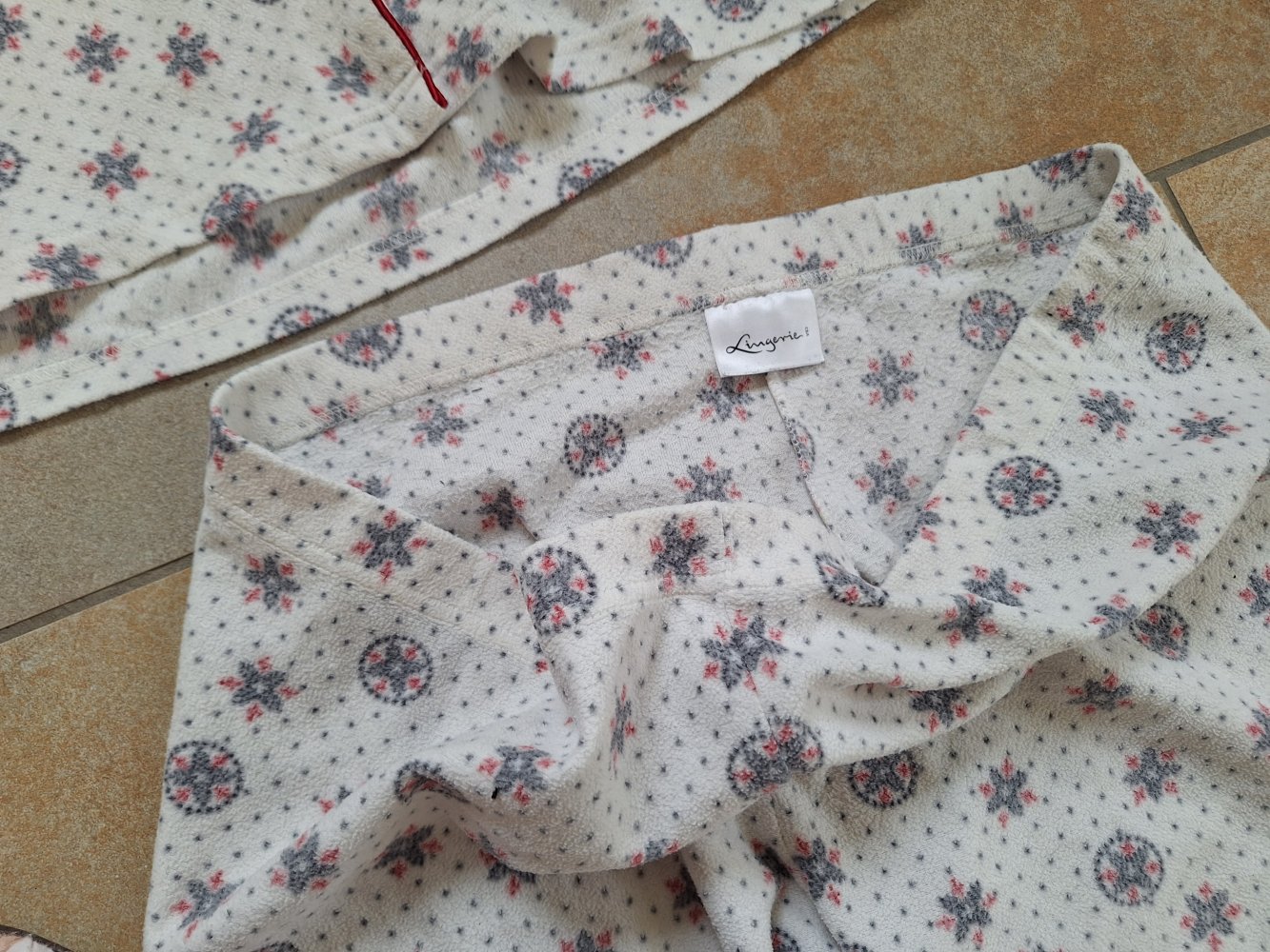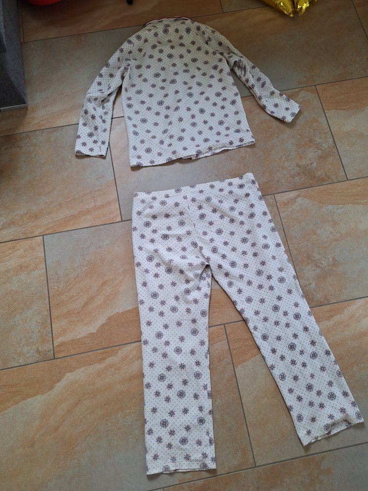 Kuscheliger weißer Schlafanzug Gr. M. Der Hosenbund ist jedoch ausgeleiert und rutscht mir in die Knie, weshalb ich ihn jetzt aussortiere.