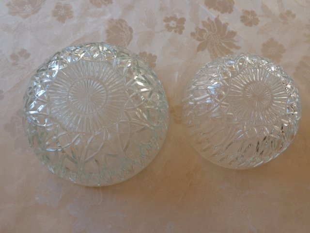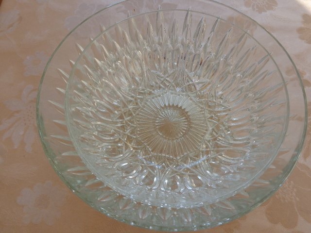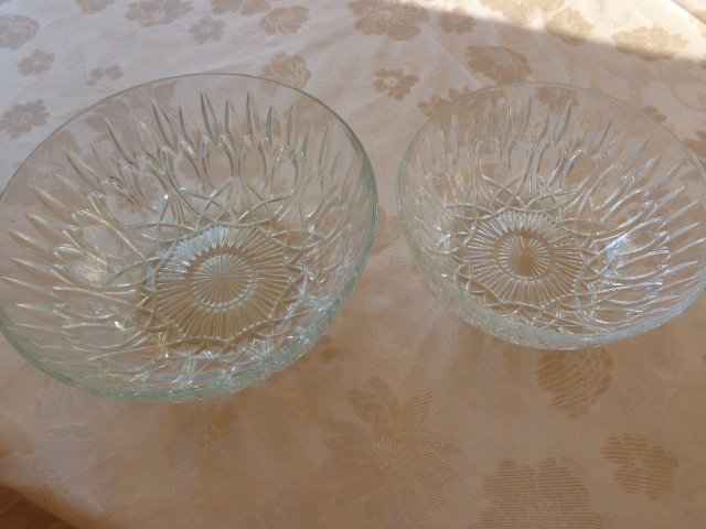Vintage - Glasschüsseln - 2er-Set, 19,5/16,5 cm Durchm. H 8,5/7,5 cm, kpl. 6,00 Euro, Abholung bevorzugt, Versand ca. 5,00 Euro möglich, zeitnahe Antwort, rauch- und tierfreier Haushalt, Privatverkauf, Rücknahme ausgeschlossen (910 - 912, nur für mich)