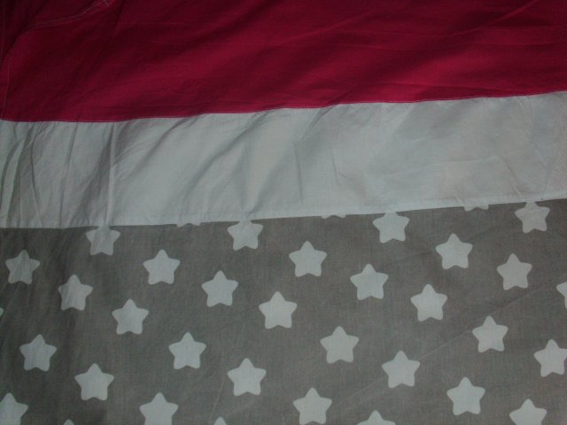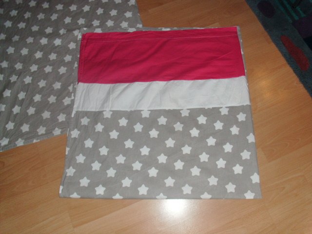 Biete hier 2 Übergardinen von Amilian an. Sie bestehen aus Baumwolle. Oben sind sie pink, dort befindet sich auch der Einschub für die Gardinenstange. Darunter befindet sich ein breiterer weißer Streifen und darunter sind die Gardinen hellgrau mit weißen Sternen. Sie hingen ca. 2 Jahre in einem Kinderzimmer. Die Maße betragen 140 x 146 cm ( B x L ).