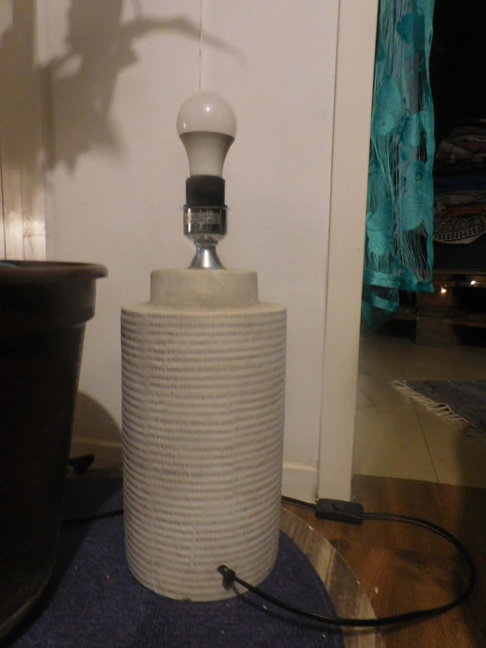 Tischlampe aus Beton, vor einem Monat Impulskauf bei Pflanzen Kölle, NP 55 Euro