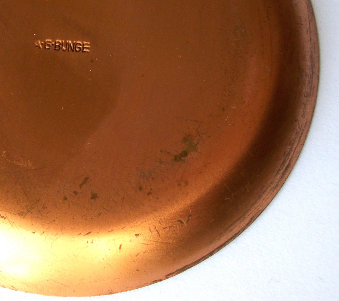 - 2 runde Untersetzer: dunkelblau, weiß, Marke: A.G. BUNGE (punziert) /Einzelpreis: 4,- €