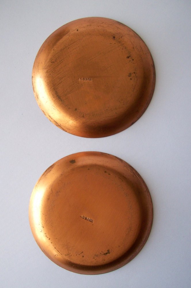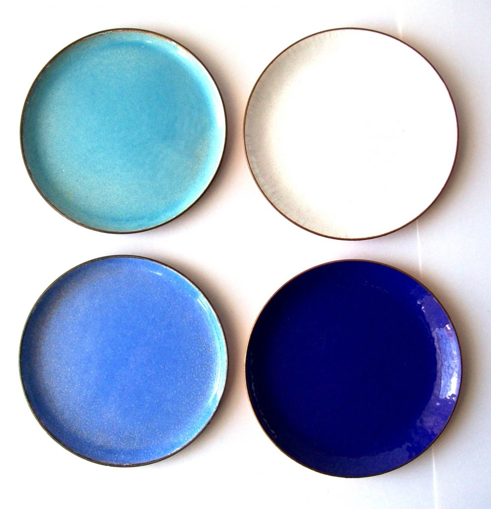 - 4 Untersetzer/Tellerchen, Kupfer und Glas-Emaille