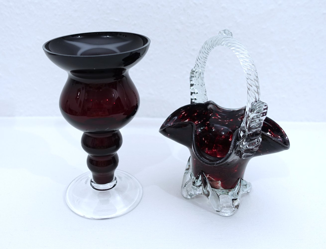 Körbchen + Vase | Kelch aus Glas, bordeauxrot, blutrot