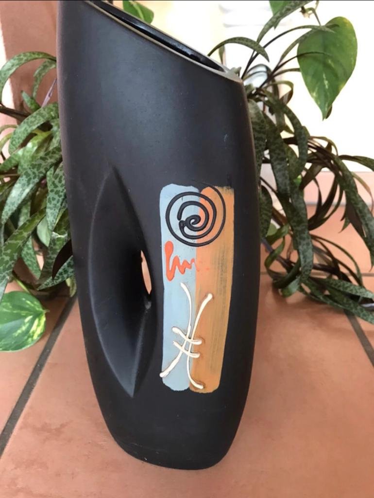 #vase #bemalt #black #gluecksmotiv #reichtum #jogistyle #interieur #unikat #tonkunst #Yingyang #tischvase #bodenvase #used