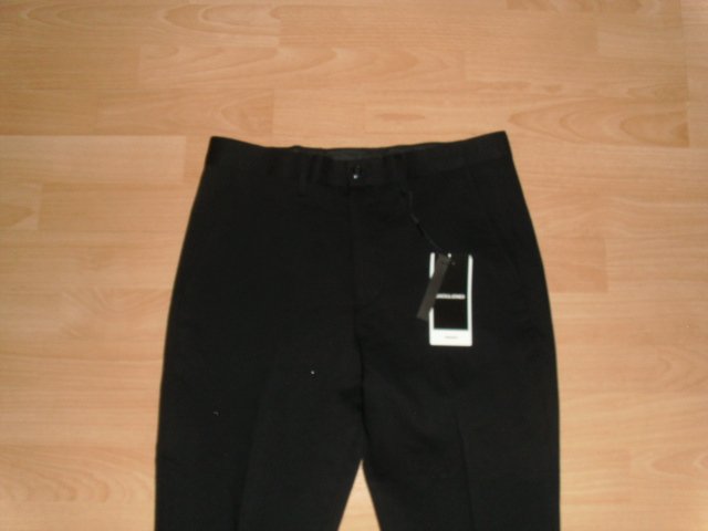 Die Anzughose hat vorn zwei Eingrifftaschen und hinten zwei Gesäßtaschen mit Knöpfen, Gürtelschlaufen sind auch vorhanden.