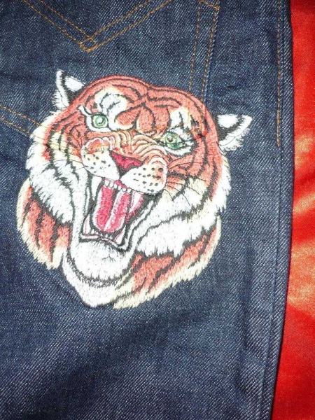 } End-lässige Jeans mit aufgesticktem Tigerkopf!