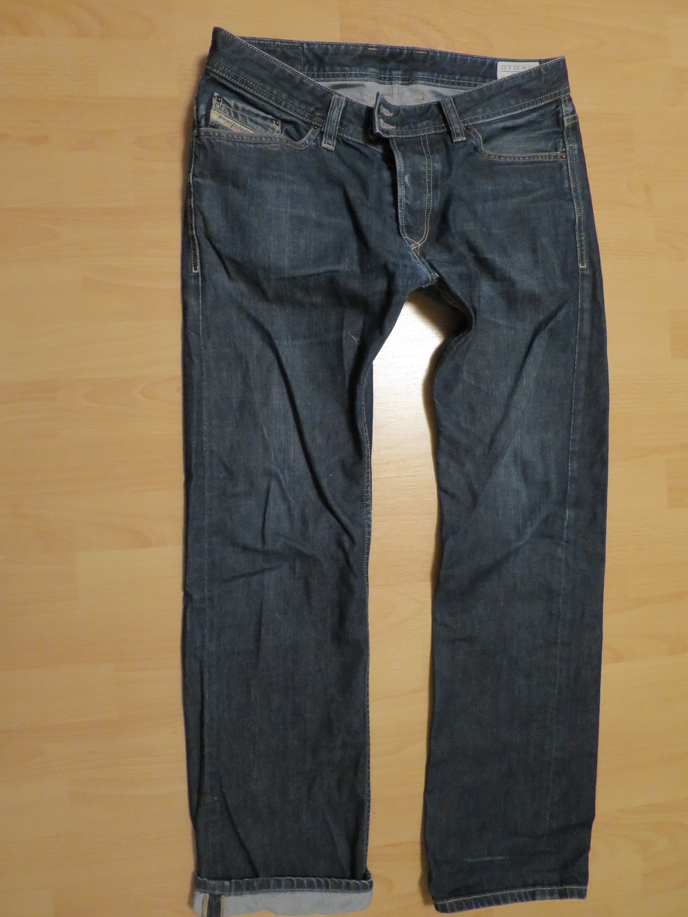 Hose wie auf Bildern abgebildet. Sie ist leicht verwaschen. Wie auf den Bildern zu erkennen ist, hat sie im Schritt innen Flicken eingenäht.