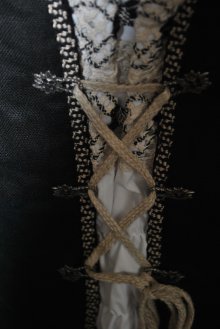 auf dem linken Bein ist seitlich ein Drachenmotiv in weiß