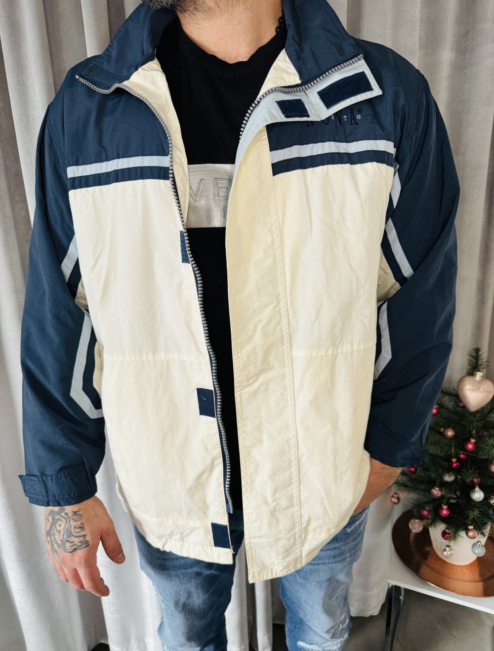 Diese schöne Herren Jacke der Marke Nova Porto ist ideal für regnerische Tage. Sie ist in der Größe XL und in einem dunklen Blau erhältlich. Die leichte Regenjacke hat Taschen und einen praktischen Reißverschluss.