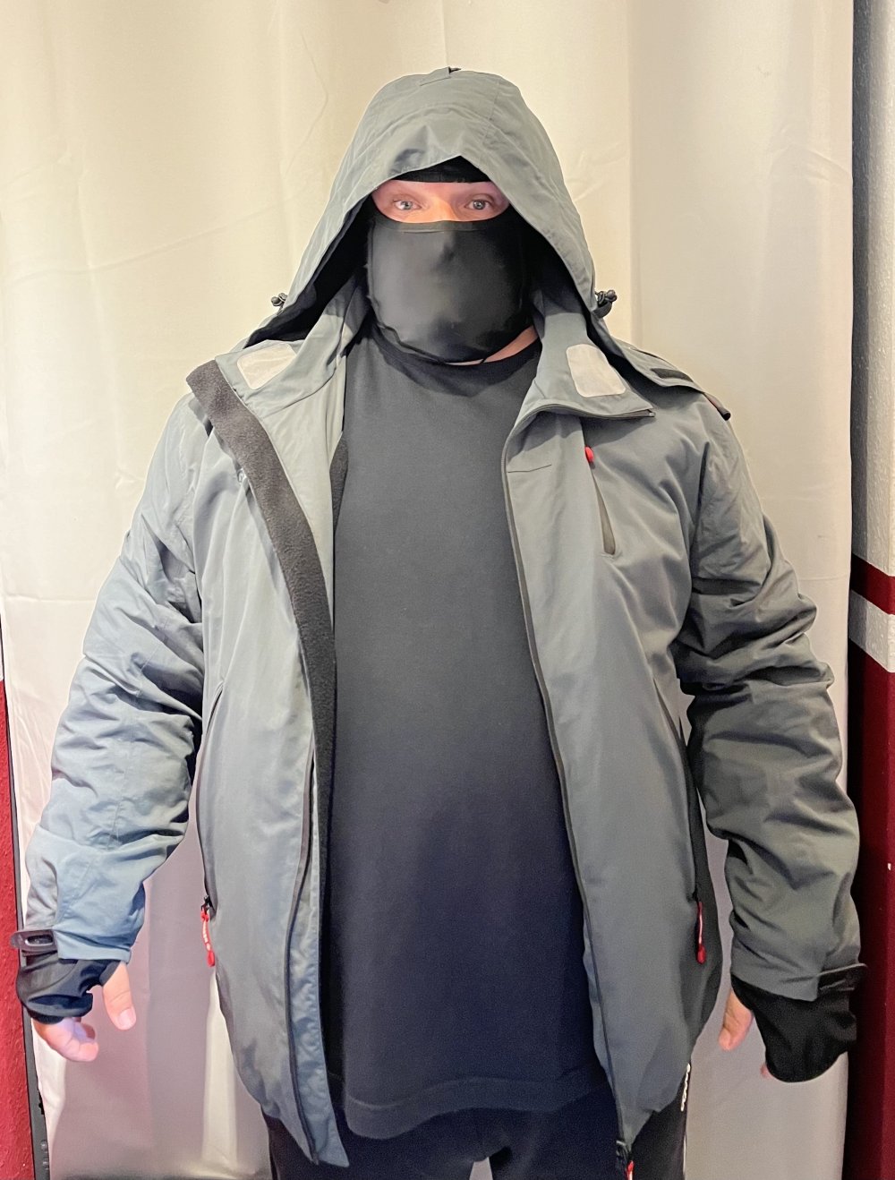 Mit abnehmbarer Kapuze und Sturmhaube…