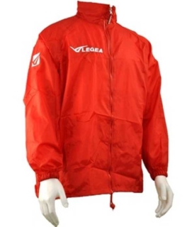 Rote Kapuze im Reissverschlussfach verstaubar.
