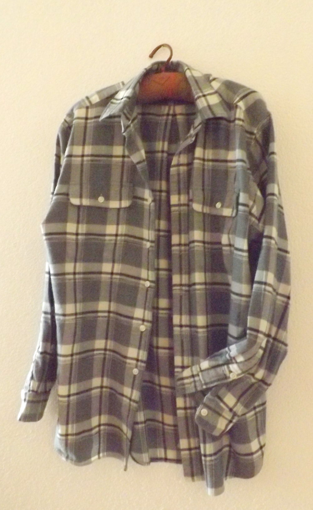Es ist im typischen " Holzfällerstil " geschnitten mit 2 Brusttaschen mit Taschenpatten. Das Hemd ist vintage, getragen, mit normalen Gebrauchsspuren des angerauten Stoffes.