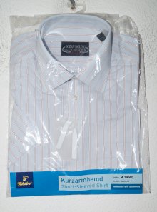 Kurzärmeliges Hemd mit hellblau weißen senkrechten Streifen