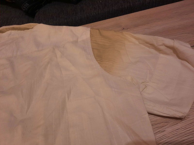 Breite 55cm. Länge 78cm. Brustweite 55,5cm. Ärmellänge unten 7,5cm, oben 21cm.