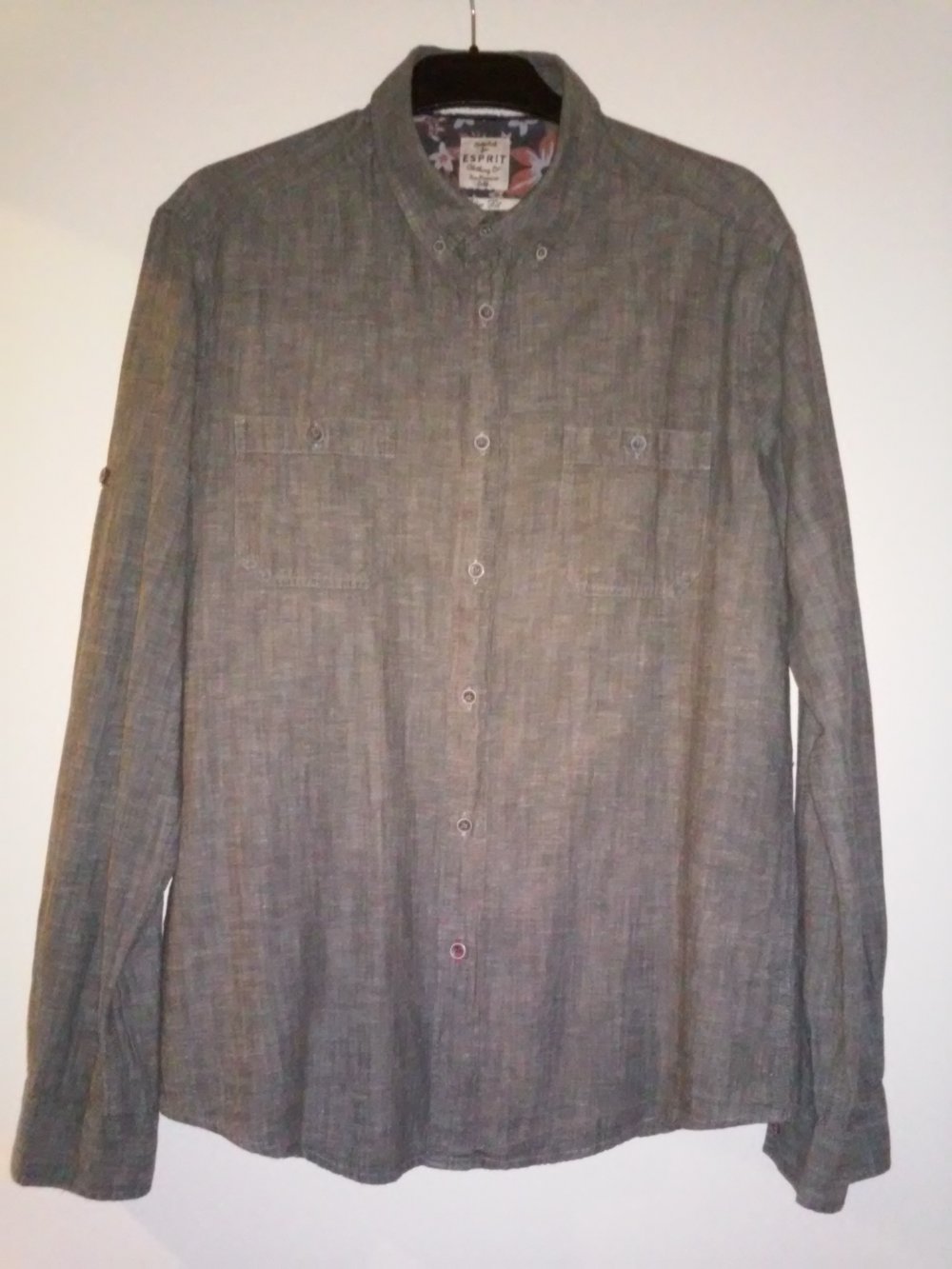Hemd EDC, Grau-Blau, Männerhemd langarm, Baumwolle